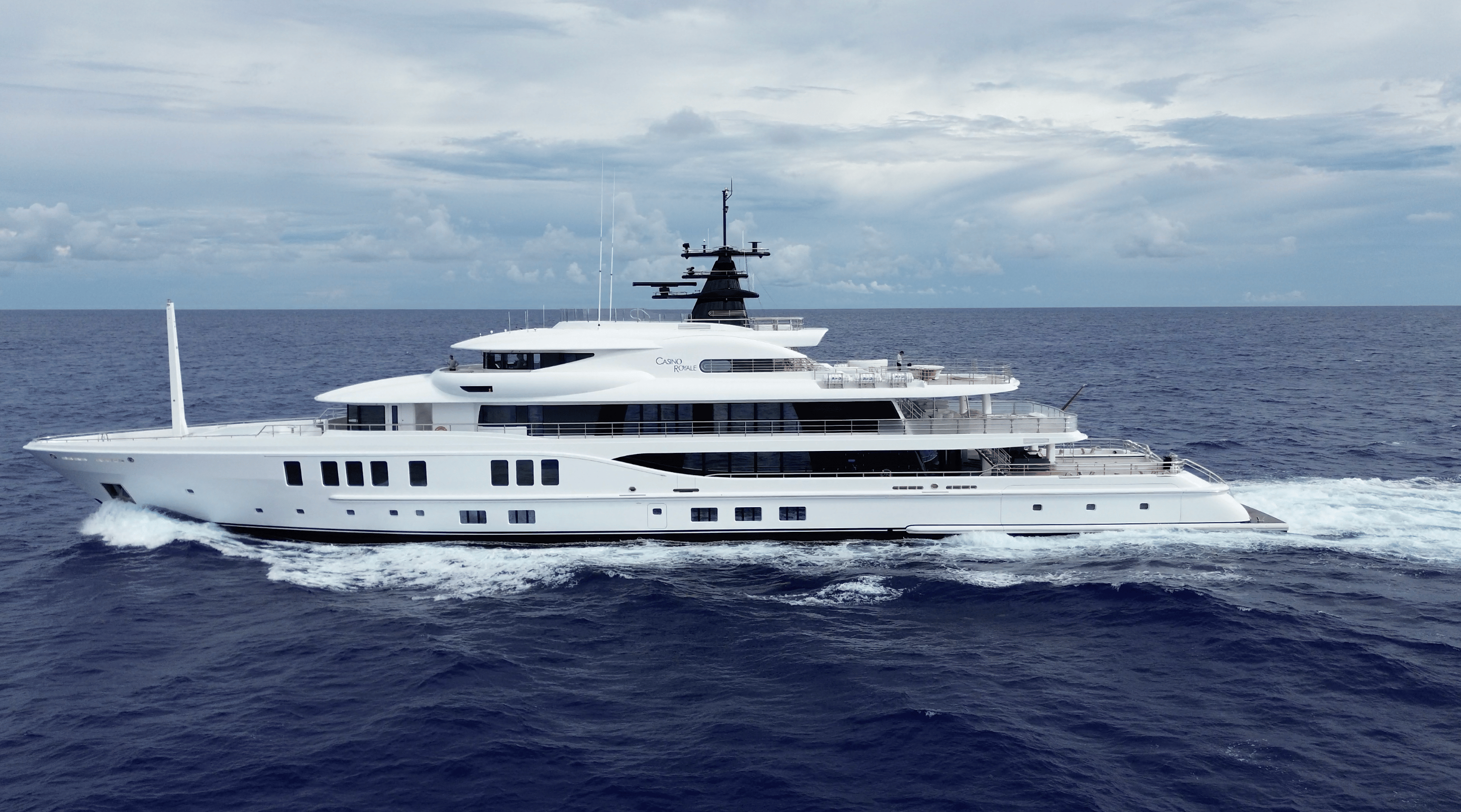 Defined by her expansive outdoor spaces, meticulous attention to detail and her exceptional volume (1,790 GT), Casino Royale is a great charter yacht, able to accommodate up to 12 guests across six staterooms, and is supported by a crew of 19 plus the captain.